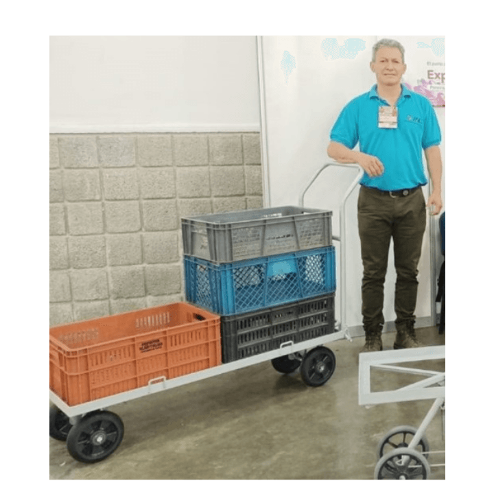Permite movilización de material, insumos, productos en canastas de 2 a 8 unidades, dentro de los callejones del cultivo, pasillos industriales; incrementando productividad y eficiencia en la labor por versatilidad y comodidad evitando además esfuerzos al trabajador al permitir el desplazamiento continuo en los corredores.